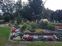 Südöstlich davon, am Eingang Wedauer Straße, befindet sich ein Gräberfeld für politisch verfolgte Opfer des Nationalsozialismus.