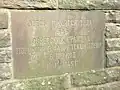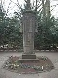 Gedenksäule (Lage) zwischen Abteilung I und II für die am 9. Juli 1917 auf der Zeche Pluto Wilhelm als Folge einer Schlagwetterexplosion tödlich verunglückten 13 Bergleute.[16]