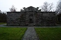 Die auffälligste Begräbnisstätte des Friedhofs ist das Grab der Familie Rathenau, das der Architekt Alfred Messel im Jahr 1903 entworfen hatte.[3] Die rechteckige Anlage aus rustiziertem Kalkstein in Formen des zyklopischen Jugendstils trägt am gegiebelten Eingang überlebensgroße Figuren aus dem Atelier des Bildhauers Hermann Hahn.