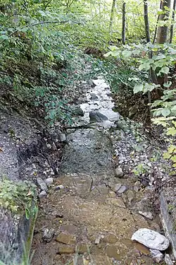 | Quelle | des Oberlaufs Grüngraben: Westabfall des Hörnles unter der Hörnlehütte 47° 38′ 33″ N, 11° 3′ 4″ O | |