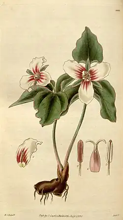 - ↑ a b c d e f g h i j Frederick W. Case Jr.: Trillium., S. 90 - textgleich online wie gedrucktes Werk, In: Flora of North America Editorial Committee (Hrsg.): Flora of North America North of Mexico. Volume 26: Magnoliophyta: Liliidae: Liliales and Orchidales, Oxford University Press, New York und Oxford, 2002, ISBN 0-19-515208-5.