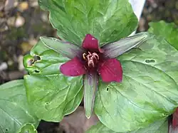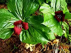 - Aufrechte Waldlilie oder Braunrote Dreizipfellilie (Trillium erectum L.)[5]: Sie ist in zwei Varietäten von Kanada bis in die USA verbreitet.[2]