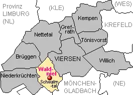 ![]() Lage von Waldniel im Gebiet der Gemeinde Schwalmtal im Kreis Viersen