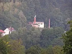 Das Firmengelände liegt etwas außerhalb des Ortes an der B 276 nach Bad Orb, unterhalb des Wellersberges.
