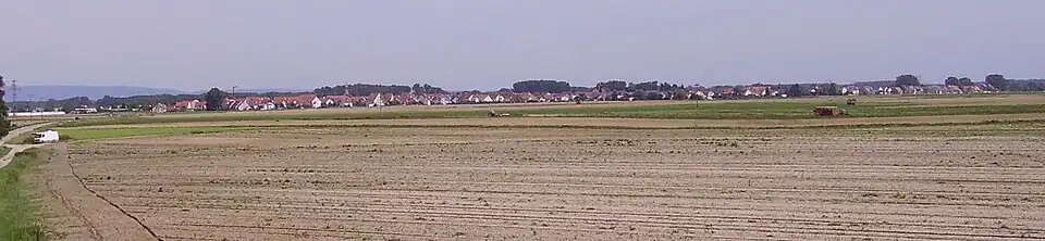 Das mittelalterliche Dorfzentrum war auf der rheinabgewandten Westseite, die nicht durch die Hochuferkante geschützt war, von einem Graben umgeben, der noch auf einem um 1770 entstandenen Ortsplan sichtbar ist. Um 1600 umfasste der Ort 32 Gehöfte, was einer Bevölkerung von 120 bis 130 Einwohnern entspricht, 1798 waren es 665 Einwohner. Bis 1820 erfolgte keine Vergrößerung der bebauten Fläche, lediglich der Graben wurde zwischenzeitlich eingeebnet. Ab etwa 1830 setzte ein rasches Wachstum der Bevölkerung des Dorfes ein, was mit einer Ausdehnung in der Fläche einherging. Die Ausdehnung erfolgte wegen der Überschwemmungsgefahr in der Rheinniederung fast ausschließlich in westlicher Richtung. Hatte der Ort 1802 noch 528 Einwohner, waren es 1911 2290 und 1960 4138 Einwohner.