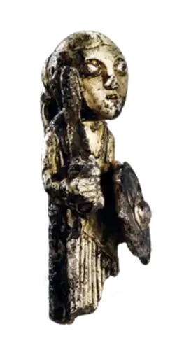 Die nur 3,4 cm hohe Figur stellt eine stehende, aber zerbrochene Walküre dar. Sie besteht aus massivem vergoldeten Silber. Teile der Figur wurden mit Niello (einer schwarzen Schwefelpaste) beschichtet, so dass sie mehrfarbig war. Die Frau trägt ein langes Kleid, dessen Details mit Niello und eingravierten Mustern versehen sind. Das Gesicht zeigt deutliche Markierungen der Züge, und das lange Haar ist in einem großen Knoten gerafft. Der Zopf bildet eine runde Öse, so dass die Figur offensichtlich an einer Schnur getragen wurde. Der rechte Arm ist angehoben und in der Hand hält sie ein Schwert. Der linke Arm hält vor dem Körper einen detaillierten Schild, bei dem sogar der Schildbuckel hervorgehoben wird.