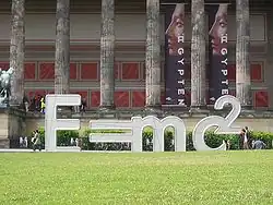 Die letzte Plastik stellt die wohl bekannteste Gleichung der Physik dar. Sie gehört zu den umwälzenden Arbeiten Albert Einsteins zur Relativitätstheorie. 1905 begründete er mit seiner Arbeit „Zur Elektrodynamik bewegter Körper“ die Spezielle Relativitätstheorie, die das Verständnis von Raum und Zeit revolutionierte. 1915 publizierte er die Allgemeine Relativitätstheorie, in der die Krümmung der Raumzeit Gravitation bewirkt.