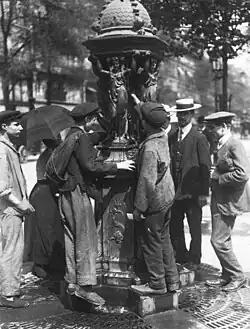 Groß war daher die Versuchung in der Unterschicht, auf alkoholische Getränke auszuweichen, und man empfand es als moralische Verpflichtung, sie vor dem Absturz in den Alkoholismus zu bewahren. Obgleich Trinkwasserzugang und Hygiene heute für die große Mehrzahl der Pariser kein Problem mehr darstellen, sind diese Brunnen für Obdachlose nach wie vor oft die einzigen kostenlosen Trinkwasserspender.