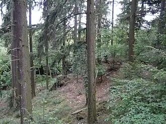 Karl August von Cohausen dokumentierte 1879 einen kleinen etwa handbreit hohen Steinwall von ovaler Form Südwest-Nordost ausgerichtet mit einer Größe von 40 Meter auf 24 Meter und nach Reliefaten etwa 1100 m2 Fläche bei 122 m Umfang einnehmend. Er veranlasste auch Wallschnitte, machte jedoch keine Funde.