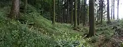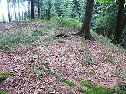 Die erste Anlage besteht aus einem fünf mal acht Meter großen Plateau. Auf diesem steht die Steinsäule eines Trigonometerpunktes mit der Aufschrift „Österreichische Landesvermessung 1930“. Dieser Punkt ist auf der Österreichkarte 1:50 000 mit der Höhe 828 kotiert. Die früher beschriebenen beiden Wälle, die sich über den Weg zogen[1], sind vermutlich durch die Anlage des Panoramaweges zerstört worden.