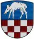 Die Wappenverleihung erfolgte erst 1965. Das Wappen zeigt im oberen Bereich eine silberne Hirschkuh auf blauem Hintergrund, in der unteren Wappenhälfte ein Schachbrettmuster in Rot und Silber.