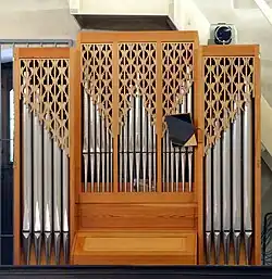 Die heutige Orgel wurde 1990 von Gerhard Schmid erbaut und über den Instrumentenhandel Ladach in Wuppertal beschafft. Aufstellung und Intonation führte die Erbauerwerkstatt durch, die Weihe fand in einer feierlichen Zeremonie am 11. Mai 2014 statt.[7][8] Sie ist mit Wechselschleifen ausgestattet und verfügt über sieben Register, die auf zwei Manuale und Pedal verteilt sind. Die Disposition lautet wie folgt:[9]