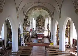 An den Längswänden der Seitenschiffe sind vier sich paarweise entsprechende Nebenaltäre aufgestellt. Die Altaraufbauten sind nach 1760 entstanden.