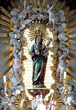 Das Skapulier war ein Kleidungsstück für Mönche. Für Maria war es ein (Schutz-)Mantel. Auf dem Berge Karmel im Heiligen Land wurde der Ritterorden Maria vom Berg Karmel gegründet. Das Skapulierfest ist ein Patroziniumsfest für Maria vom Berg Karmel, der die Kirche in Baitenhausen gewidmet ist.[8] Eine Prozession findet am Skapulierfest statt.
