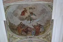 Die Gewölbemalereien schuf Christoph Brandstätter der Ältere am Anfang des 19. Jahrhunderts, sie zeigen Dekorationsmalerei mit Vasen und Kränzen, sowie im Langhaus Vermählung Mariä, seitlich Verkündigung und Tempelgang, in den Stichkappen Evangelisten, im Chor Mariä Himmelfahrt mit den Zwölf Aposteln.
