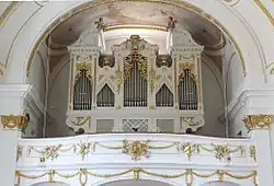 Die erhaltene Orgel wurde 1964 von Orgelbau Zeilhuber gebaut und hatte 34 Register auf drei Manualen und Pedal. Im September 2013 wurde sie durch die Orgelbauer Andreas Utz (Regensburg) und Christoph Weber (Landshut) restauriert, umdisponiert und erweitert. An Ostern 2014 wurde sie wieder eingeweiht. Sie verfügt heute über 40 Register, verteilt auf drei Manuale und Pedal. Auch ein neuer Spieltisch wurde gebaut und das Schwellwerk erhielt eine neue Dämmung. Die Spiel- und Registertrakturen sind elektrisch. Die Disposition lautet wie folgt: