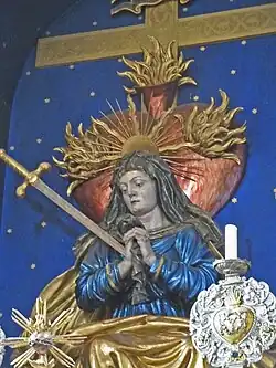 Die Altäre und die Kanzel sind im sogenannten Jesuitenstil gehalten, das heißt, dass das Holz schwarz und die Verzierungen und Statuen golden sind.