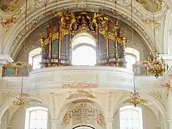 1733 fertigten Johann Baptist Funtsch aus Amberg und sein Kompagnon Jakob Theodor Berns ein neues Orgelwerk mit elf Registern. Das Gehäuse als ältestes seiner Art aus der Oberpfälzer Schaffensperiode mit Berns lässt das Mittelfenster frei. Es spiegelt noch den mainfränkischen Typus wider. Johann Konrad Brandenstein erweiterte das Werk 1743, ebenso 1773 Sohn Johann Conrad Funtsch und 1817 Wilhelm Hepp. 1875 baute Georg Zweck die Orgel auf 21 Register um, beseitigte die kurze Oktav und erweiterte den Tonumfang bis f3.Er rückte das Gehäuse nach vorne. Doch schon 1881 erfolgte ein Registeraustausch, 1884 ein vernichtendes Gutachten von Franz Borgias Maerz (München), der 1902 ein neues Instrument (op. 423, 16 Register auf pneumatischen Kegelladen) lieferte. Hermann Kardos (Vilseck) erweiterte es 1948 auf 19 Register, dabei wurde das Fenster zugebaut. Der nächste Neubau erfolgte 1978. Reinhard Weise und OSV Eberhard Kraus (Regensburg) stellten einen Neubau auf mechanischer Schleiflade (erstaunliche 25/III/P) in das kompakte Funtsch-Gehäuse. Die Posaune 8' im Pedal wurde mittlerweile durch ein Fagott 16' ersetzt.[5][6] Ein stilistisch stimmiger Orgelneubau ist in Planung (Stand: 2025).
