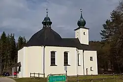 Der Zentralbau auf viereckigem Grundriss mit eingezogenen, abgerundeten Ecken wurde 1757–62 anstelle einer 1694 erbauten Kapelle errichtet. Ihre achtseitige Kuppel ist mit einer Laterne bekrönt. Im Osten befindet sich die ehemalige Wohnung eines Eremiten in einem eingezogenen, dreiseitig geschlossenen Chor mit angebauter Sakristei, auf dem sich ein quadratischer Dachreiter erhebt, der mit einer Zwiebelhaube bedeckt ist.