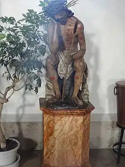 Außerdem sind auch die spätgotische Sitzfigur Christus in der Rast im linken Seitenschiff, die der Schule Hans Leinbergers zugeschrieben wird, sowie der Kreuzwegzyklus von Max Schmalzl aus der Zeit um 1880 interessant. An gegenüberliegenden Position an den Langhauspfeilern im Mittelschiff befinden sich eine spätbarocke Statuengruppe aus der Werkstatt Christian Jorhans um 1750, die den Erzengel Michael im Kampf gegen Luzifer zeigt, und ein ebenfalls barockes Kruzifix mit einer Figur der Schmerzensmutter darunter. An den Rückwänden der Seitenschiffe sind zahlreiche Votivtafeln angebracht, die von vielen Gebetserhörungen der Mutter Gottes künden. Über der Eingangstür der Kirche hängt ein bemerkenswertes Gemälde aus dem 18. Jahrhundert, das Jesus und seine Jünger beim Emmausgang zeigt, wobei die Szene vor einer Ansicht des Schlosses Nymphenburg in München wiedergegeben ist.[5][6]