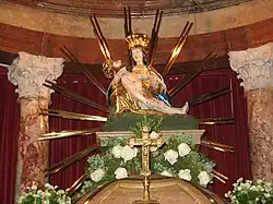 Im Klosterbereich vor der Kirche stehen mehrere steinerne Statuen aus der ersten Hälfte des 18. Jahrhunderts. Darunter sind eine Mariensäule von 1715 und die Statuen der hll. Sebastian, Rochus, Rosalia, Bernhard, Johannes Capistranus, Johannes Nepomuk, Franz von Assisi und Antonius von Padua.
