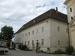 Das Klostergebäude wurde 1699–1703 nördlich an die Kirche angebaut. Es handelt sich um eine zweigeschoßige Vierflügelanlage um einen quadratischen Innenhof. Im Refektorium befinden sich an der stuckierten Flachdecke Bilder in Rundmedaillons, Lünettenbilder (beide 2. Viertel 18. Jahrhundert) und ein Kruzifix vor einer gemalten Kreuzigungsgruppe an der Ostwand aus der Mitte des 18. Jahrhunderts. In der „alten Bibliothek“ werden barocke Bilder aufbewahrt. Im Hof steht eine steinerne Pietà aus der Zeit um 1800.