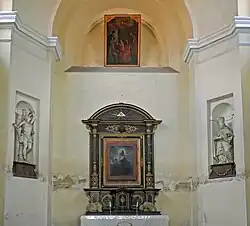 - St. Josef-Altar (3. Seitenaltar, links) mit dem Bild des hl. Josef von Raab und den Statuen der Erzengel Michael und Erzengel Gabriel sowie dem Bild des hl. Johannes des Täufers im Aufsatz.