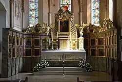 Der Hochaltar der Nordkirche, um 1700 entstanden und 1790 verändert, ist ein Säulenaltar mit Sprenggiebel und Aufsatz und zeigt die Bilder Mariä Heimsuchung und Gottvater. Die barocken Figuren Katharina und Barbara stehen über den Opferungsportalen.