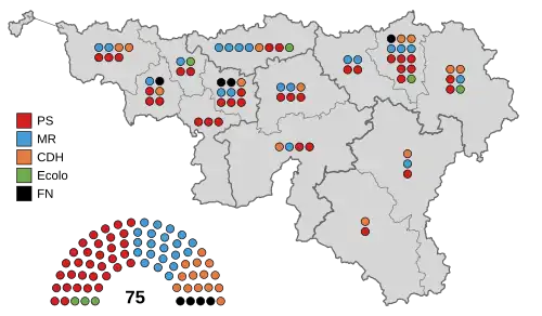 - ↑ a b Ergebnis Wallonisches Parlament 13 Juni 2004. IBZ (Föderaler Öffentlicher Dienst Inneres), abgerufen am 22. Februar 2025.
