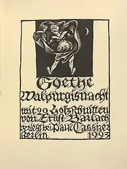 - Johann Wolfgang von Goethe: Walpurgisnacht. Mit 20 Holzschnitten von Ernst Barlach. Paul Cassirer, Berlin 1993, DNB 36143331X (haab-digital.klassik-stiftung.de – Erstausgabe: 1923, Nachdruck: Von diesem Buch wurden zuvor 120 nummerierte Exemplare bei Poeschel & Trepte in Leipzig auf echtes Zandersbüttenpapier gedruckt. Jedes Buch ist von Ernst Barlach handschriftlich gezeichnet).