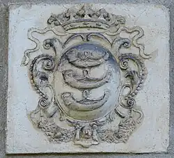 - Das Stammwappen zeigt in Silber drei rote, gold beschlagene und beschnürte Hifthörner übereinander. Auf dem Helm mit rot-silbernen Decken die drei Hifthörner übereinander.