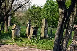 Hinter der protestantischen Kirche schließt sich ein aufgelassenes Gräberfeld an mit einigen für die evangelischen Gemeinden des unteren Elsass so typischen Grabstelen aus Sandstein. Anders als die Grabsteine auf katholischen Friedhöfen hat man hier auf Kreuzaufsätze oder Kreuzessymbole verzichtet. Die Grabstelen erinnern vielmehr an kurze Baumstämme, klassische Säulen oder Pylone, teilweise weist das Steinmetzdekor Pflanzenornamente und Stoffnachbildungen auf.