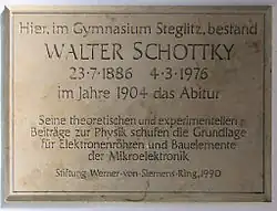 - ↑ Walter Schottky erhält den Werner-von-Siemens-Ring 1964. In: Stiftung Werner-von-Siemens-Ring. Abgerufen am 24. April 2025.