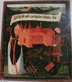 Um 1138 stiftete Walter von Lomersheim in Eckenweiher (wie Lomersheim heute ein Teil von Mühlacker im Enzkreis) den Vorläufer von Kloster Maulbronn, für das er sein väterliches Erbgut vor Ort bereitstellte und in das er danach als Laienbruder eintrat. Weil sich das Grundstück für eine größere Klosteranlage nicht eignete, verfügte der Speyerer Bischof Günther von Henneberg, dass das Kloster Hirsau der jungen Mönchsgemeinschaft das Gewann „Mulenbrunnen“ im Stromberg zur Verfügung stellte, das genügend Wasser und steinbruchfähige Hänge aufwies.[1] Hier wurde mit Unterstützung der Edelfreien Werner von Roßwag und Bertha von Grüningen das Kloster Maulbronn errichtet.[2] Walter von Lomersheim wird auf einer Wandmalerei im Kloster zusammen mit dem Bischof als Stifter mit einem Modell der Klosterkirche dargestellt.
