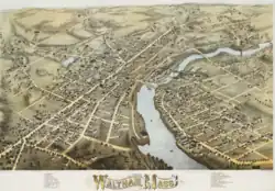 1868 nahm eine Pferde-Straßenbahn ihren Betrieb auf und 1871 beschaffte die Kommune das erste Feuerlöschfahrzeug mit einer Dampfpumpe für das Löschwasser. 1881 wurde Waltham an die Central Massachusetts Railroad angeschlossen. Eine weitere Tageszeitung, die Waltham Daily Tribune, erschien erstmals 1882. In diesem Jahr wurde auch die erste lokale Telefongesellschaft eingerichtet.[4] An Weihnachten 1886 wurde erstmals die elektrische Straßen- und Schaufensterbeleuchtung eingeschaltet.[5] 1873 wurde eine Trinkwasserversorgung aus dem Charles River eingerichtet. Sie umfasste ein Leitungs- und Pumpensystem mit Filteranlage und war bis 1949 in Betrieb.[4]