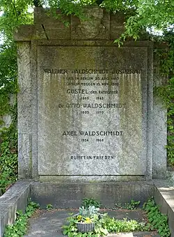 Auch auf dem Gebiet der kleinen Politik hat sich Walther Waldschmidt betätigt. Als langjähriger Vorsitzender der „Freien Vereinigung“ hat er stets die Bestrebungen der Eingemeindung Grunewalds in ein Groß-Berlin bekämpft. In Meggen bei Luzern ist er am 13. November 1932 in einem Sanatorium verstorben. Sein Grab befindet sich auf dem Friedhof Grunewald.