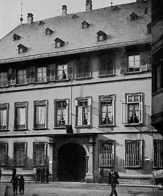 - ↑ Pfeiffer: Le guide de la ville de Mayence contenant la dénomination de ses six sections, rues, maisons et de leurs numéros, ainsi que des habitans avec leurs qualités, états, professions ou métiers Mainz, An IX=[1800], Digitalisat in Dilibri Rheinland-Pfalz
