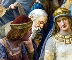 ![]() Die Fürsten huldigen dem sechs Wochen alten Heinrich IV. in der Pfalz Pöhlde (Weihnachten 1050) |