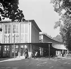 Das Gebäude wurde 1934/35 vom Architekten Eduard Krüger zwischen den einige Jahre früher errichteten Gebäuden des Parkhotels und des Trinktempels erbaut. Stilistisch steht sie zwischen der traditionellen Heimatschutzarchitektur und dem Neuen Bauen.[1]