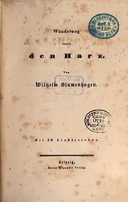 - ↑ Wanderung durch den Harz. Wigand, Leipzig 1838, Druck von Breitkopf & Härtel in Leipzig.