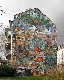 - ↑ Maximilian Rapp, Markus Rhomberg: The importance of Murals during the Troubles: Analyzing the republican use of wall paintings in Northern Ireland. In: D. Machin (Hrsg.): Visual Communication. De Gruyter, 2014, ISBN 978-3-11-025548-5, S. 677ff.