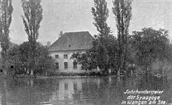 Mit der Ansiedlung der ersten Juden im 17. Jahrhundert wurde Wangen eine christlich-jüdische Landgemeinde. Deren erste Synagoge wurde vermutlich im 18. Jahrhundert gebaut, ersetzt durch das 1827 eingeweihte größere Gebäude in unmittelbarer Nähe des Seeufers. Oberhalb des Dorfes legte die jüdische Gemeinde 1827 auch einen eigenen Friedhof an, der 1889 erweitert und 1901 mit einer Mauer umgeben wurde.[2] Im Verlauf der Reichspogromnacht 1938 wurde von der in Radolfzell stationierten SS-Verfügungstruppe III./„Germania“ die 1827 eingeweihte Synagoge von Wangen zerstört. Im Rahmen der Wagner-Bürckel-Aktion wurden am 20. Oktober 1940 alle noch auf der Höri und im Hegau verbliebenen Jüdinnen und Juden von Angehörigen der Radolfzeller SS, lokaler Ordnungspolizei und Konstanzer Gestapo erfasst und in den unbesetzten Teil Frankreichs in das Internierungslager Gurs deportiert.[3]