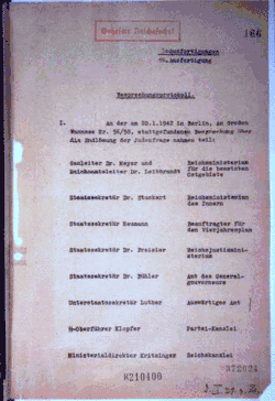 - ↑ Wissenschaftliche Edition der Wannsee-Dokumente in: Akten zur deutschen Auswärtigen Politik 1918–1945, Serie E: 1941–1945, Band I: 12. Dezember bis 28. Februar 1942, Göttingen 1969, S. 267–275.