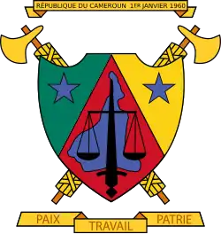 | Wappenschild | Flagge Kameruns, Umrisskarte von Kamerun, Waage |