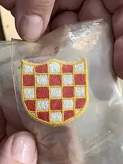 Es findet sich in dieser Variante erstmals bei den ersten Polizeieinheiten der Republik Kroatien (Prvi hrvatski redarstvenik), die in Kroatien und den kroatischen Gebieten Bosnien-Herzegowinas gebildet wurden und dieses von Herbst 1990 bis Anfang 1991 (noch von einem Strahlenkranz umgeben) als Mützen- und Stoffabzeichen trugen.[17] Vermutlich wurde es von kroatischen Freiwilligen aus Bosnien und Herzegowina etabliert, die nach Beginn des Bosnienkrieges 1992 aus dem Kroatienkrieg in ihre Heimat zurückkehrten. Auch in anderen Flaggen Bosnien-Herzegowinas findet man das kroatische Wappen.[18] Seit dem Bosnienkrieg (1992–1995) wird von den Kroaten in Bosnien und Herzegowina allgemein das Wappen der Kroatischen Republik Herceg-Bosna verwendet. Die Kantone Westherzegowina[19][20] und Westbosnien[21][22] verwenden das Wappen offiziell.