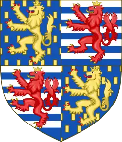 Sein Sohn, Johann der Blinde, König von Böhmen, übernahm den roten golden gekrönten Löwe, nicht aber die vielen blauen Balken. Sein geviertes Wappen mit dem Böhmischen Löwen und dem Luxemburger Löwe ist im „Wapenboek van Beyeren“ (1400) zu sehn.