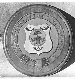 Die Gold Coast Railway verwendete das leicht abgewandelte Emblem der Kolonie Goldküste, umrahmt mit ihrem Namen in einem Band mit Schnalle.