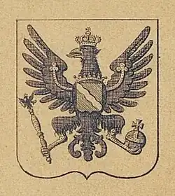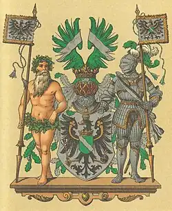 - ↑ Hugo Gerard Ströhl: Deutsche Wappenrolle. Enthaltend alle Wappen, Standarten, Flaggen, Landesfarben und Kokarden des Deutschen Reiches, seiner Bundesstaaten und regierenden Dynastien. Julius Hoffmann, Stuttgart 1897