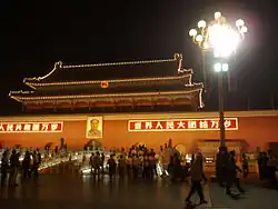 Das Tor des Himmlischen Friedens ist der südliche Zugang zur Verbotenen Stadt, von dessen Balustrade aus Mao Zedong am 1. Oktober 1949 die Volksrepublik China ausrief.