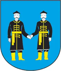 - Kozłowa Góra (Ziegenberg): Entsprechend dem Ortsnamen zeigt es zwei rote Ziegen auf den Spitzen zweier Hügel auf weißem Grund.